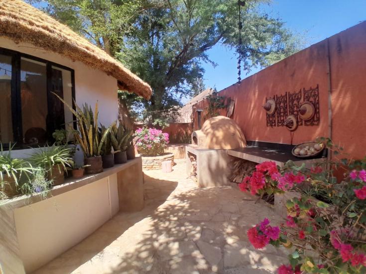 Une terrasse couverte privative à l'avant donne sur le jardin et la piscine et à l'arrière une deuxième terrasse plus intime est équipée d'un four à pain ou pizzas.