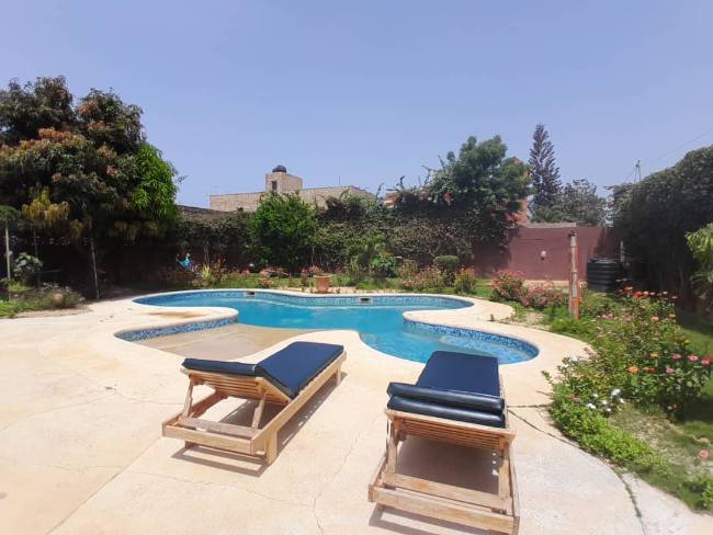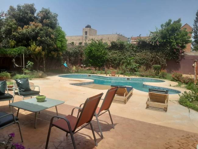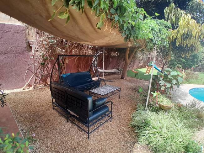 Dans le magnifique jardin arboré de plantes exotiques se trouve la maison du gardien ,un puits avec pompe ,une réserve d'eau de 1000 litres et une place de stationnement .
