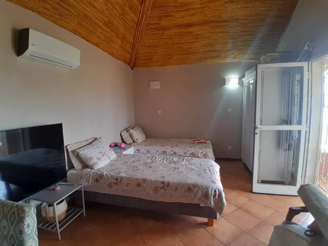 A l'étage ,la villa comprend 2 chambres avec une salle d'eau ouvrant sur une terrasse couverte avec une belle vue sur les environs