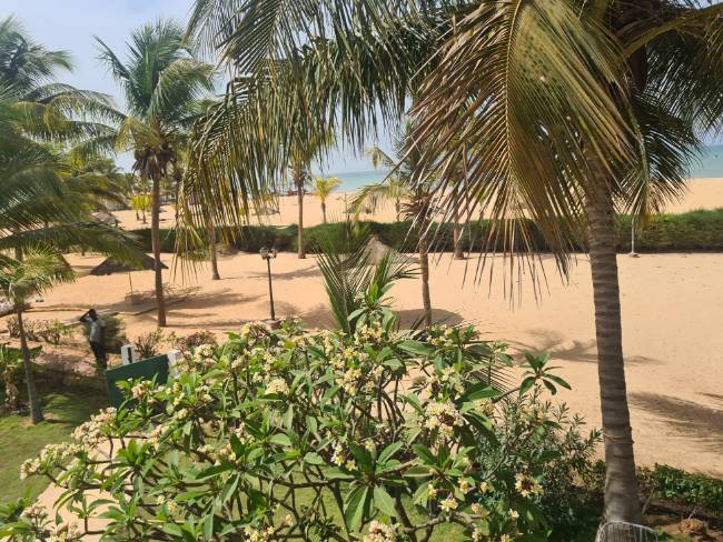 Ce jardin donne accès direct à la magnifique plage privée de 100 mètres de façade mer, plantée de cocotiers . Cette plage privée est sécurisée par un poste de garde et donne accès directement à la plage publique et à l'océan.