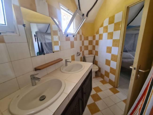 A l"étage, 2 chambres, une salle d'eau-wc commune avec accès direct de chaque chambre.et une grande terrasse surplombant la mer.