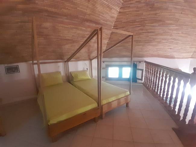 La villa en vente comprend 3 chambres climatisées dont une en mezzanine et une salle d'eau .
