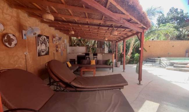 Le jardin est arboré de plantes exotiques variées et de palmiers et la piscine de 4 mètres x 9 mètres fonctionne avec un moteur solaire et une filtration au sel.