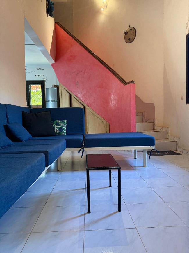 Cette villa à vendre est située dans un quartier très calme, accessible, sécurisé et bien habité . De plus la maison est proche des commerces et des axes routiers principaux .